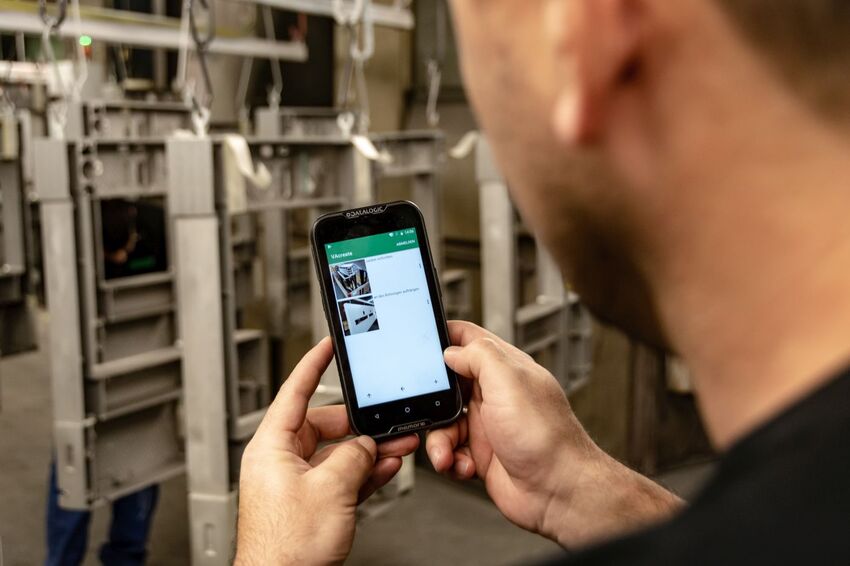 Dank einer eigens entwickelter App und die Beschaffung von Smartphones können diese Verfahrensanweisungen nun direkt vor Ort erstellt und über W-Lan ins System übertragen werden. Die Erstellung einer Verfahrensanweisung benötigt kaum länger als 1 Minute. Produziert nun ein Mitarbeiter diesen Artikel, erscheinen auf einem Touchscreen automatisch die dazugehörenden Fotos mit den entsprechenden Kommentaren. Zusätzlich werden noch Informationen wie Qualitätsstufe oder Anforderungen an die Beschichtung angezeigt.
